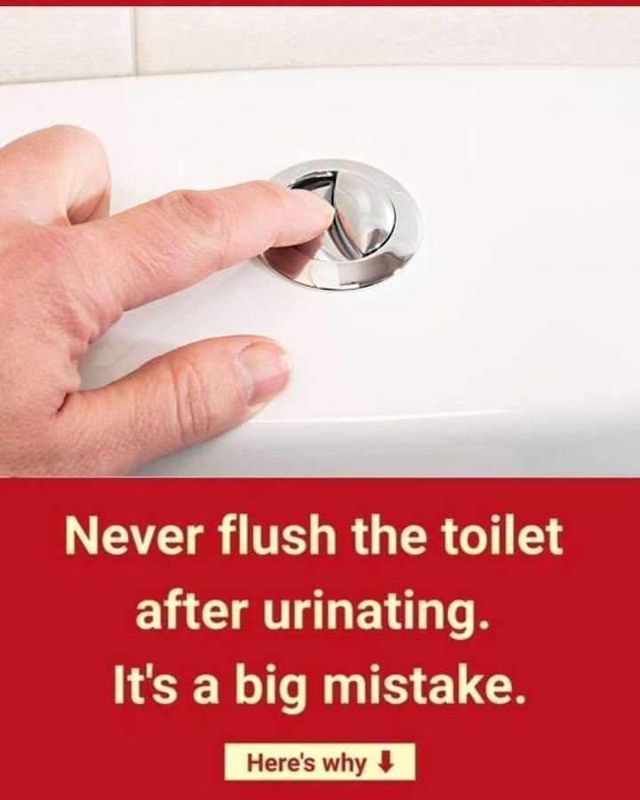 In other words, you only flush when you really need to – not every time you pee. Urine is naturally sterile and represents no immediate health risk, provided the toilet is cleaned regularly.Buy vitamins and supplements