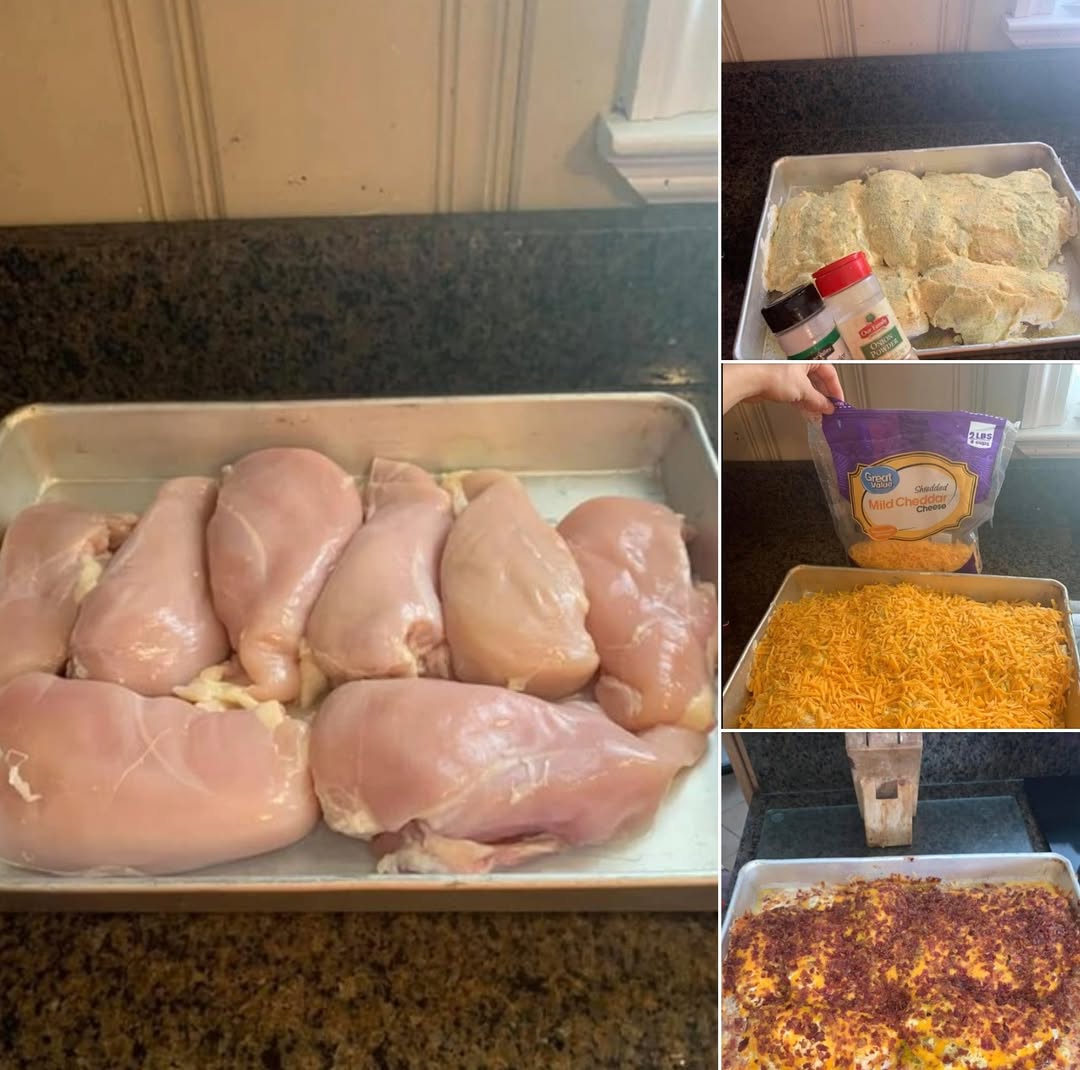 Tender chicken breasts are smothered in a creamy ranch spread, then loaded with cheddar cheese and crispy bacon for an incredibly easy and crowd-pleasing dinner.