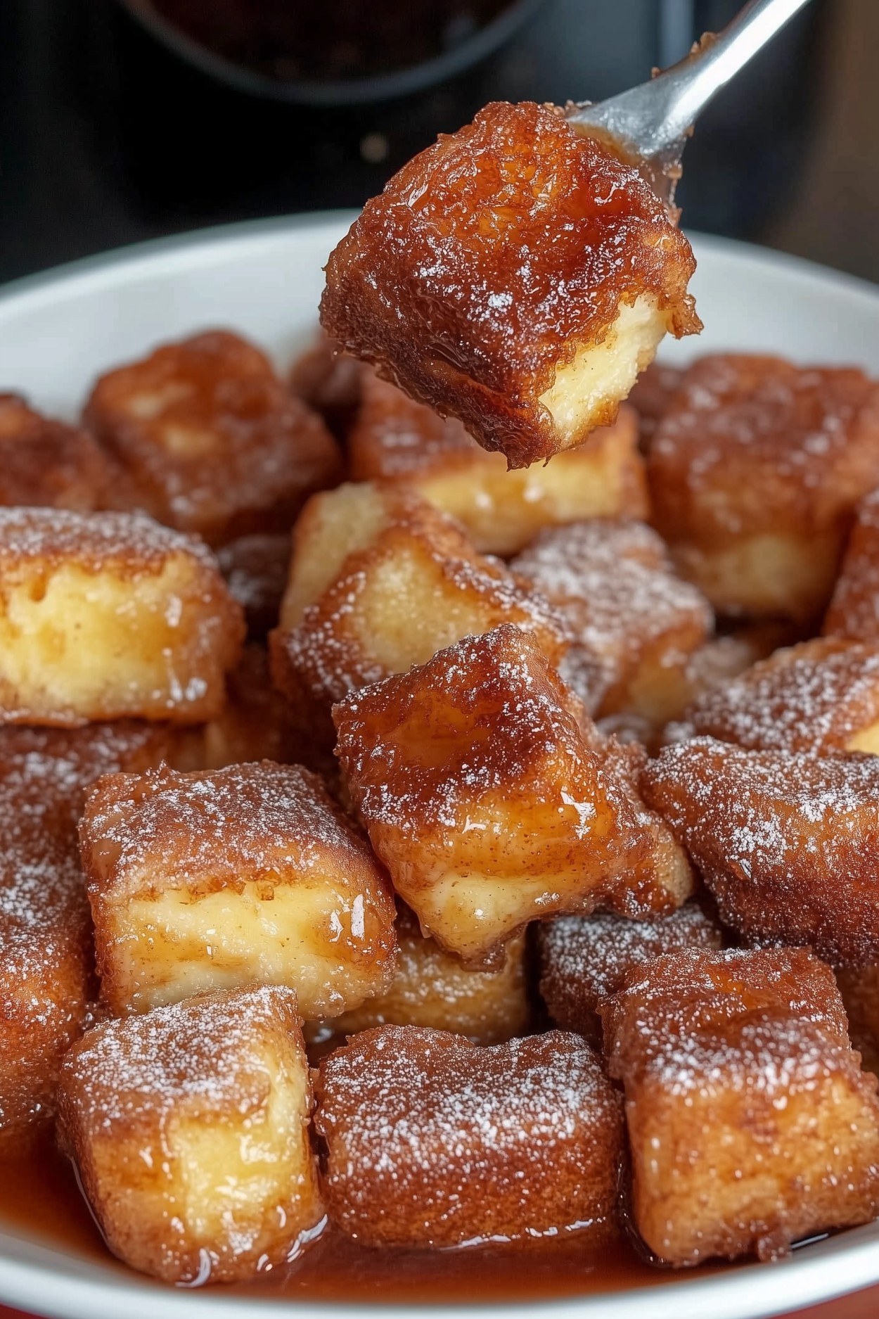 Transform a can of cinnamon rolls into a decadent, bite-sized breakfast sensation. Golden brown on the outside and soft on the inside, these irresistible bites are perfect for dipping and sharing.